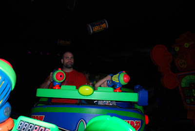 One of the fave rides for the kids....Buzz Lightyear ride. The hubs is concentrating:o)